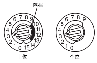 2. 按图3.4所示,将探测器的十进制编码开关拔至预定的地址号。